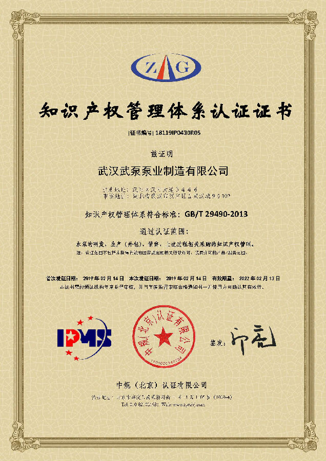 祝賀丨武漢武泵泵業(yè)制造有限公司獲得國家級知識產(chǎn)權(quán)貫標(biāo)認(rèn)證!
