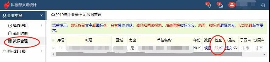 填寫完成后,點(diǎn)擊『數(shù)據(jù)管理』,對錯(cuò)誤項(xiàng)進(jìn)行檢查,錯(cuò)誤項(xiàng)必須修改;