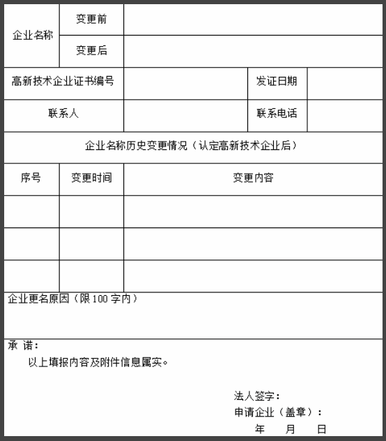 高新技術(shù)企業(yè)名稱變更申請(qǐng)表