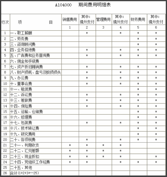 (1)A104000——期間費(fèi)用明細(xì)表